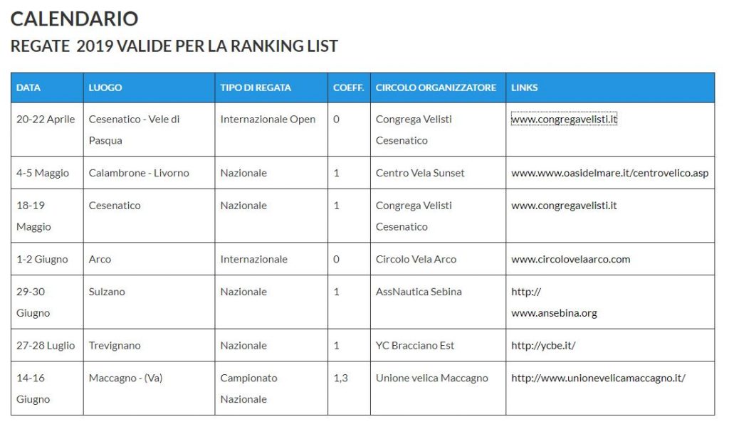 Regattakalender Italien 2019