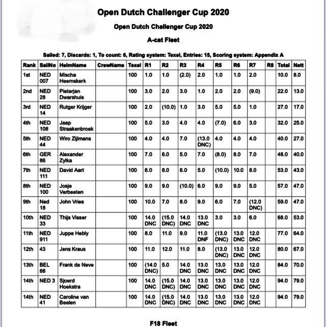 Etwas über 80 Segler, davon 13 A-Catler, hatten sich eingefunden um sich in die Hitzeschlacht zu begeben. Am Samstag Morgen ging dann erst mal die Startverschiebung nach oben. Mindestens 2 Stunden. Es war kaum ein Lufthauch zu spüren, dann wurde der Ostwind stärker um dann zu drehen, die Seebriese kam doch noch. Also ging es raus aufs Wasser. Drei Rennen wurden bei wechselnden Windstärken gesegelt. Teils reichte es zum Foilen teils nur zu Klassisch.