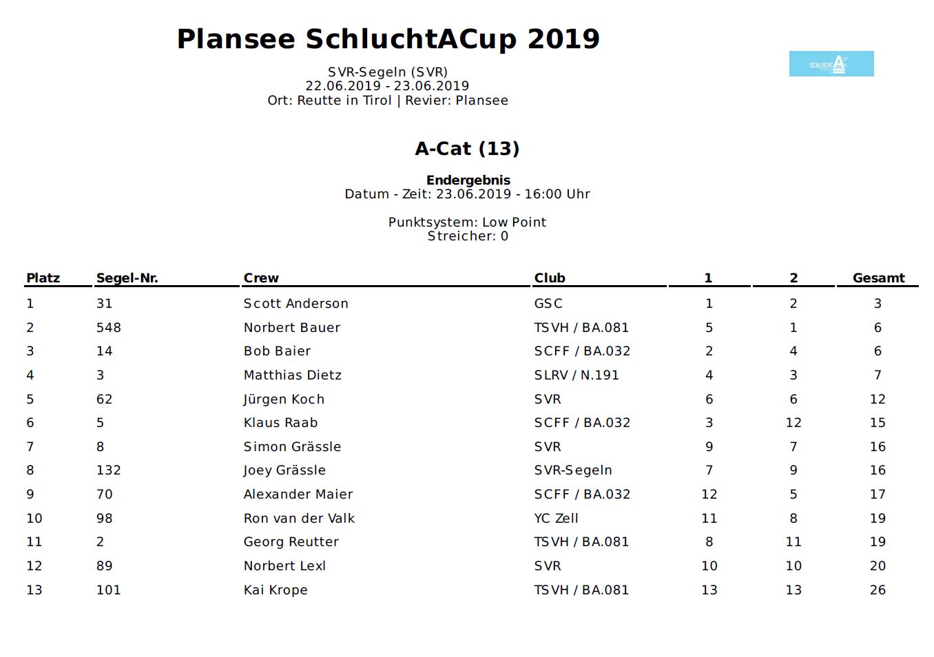 Ergebnis SchluchtACup Plansee