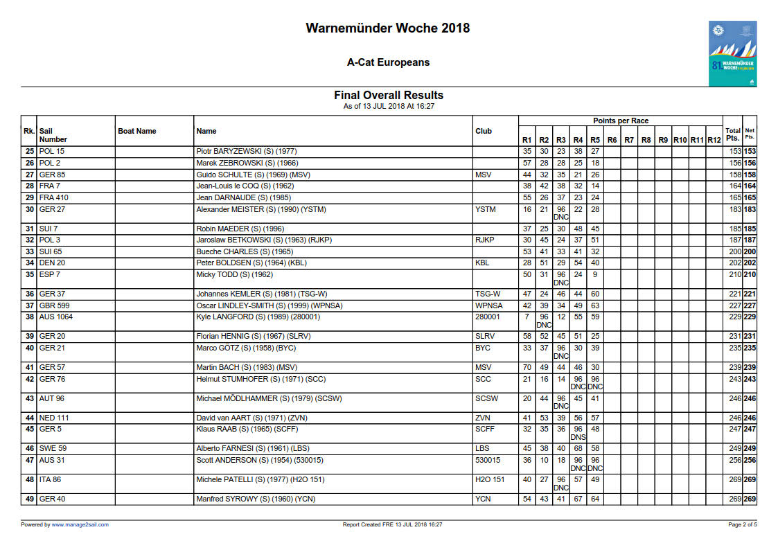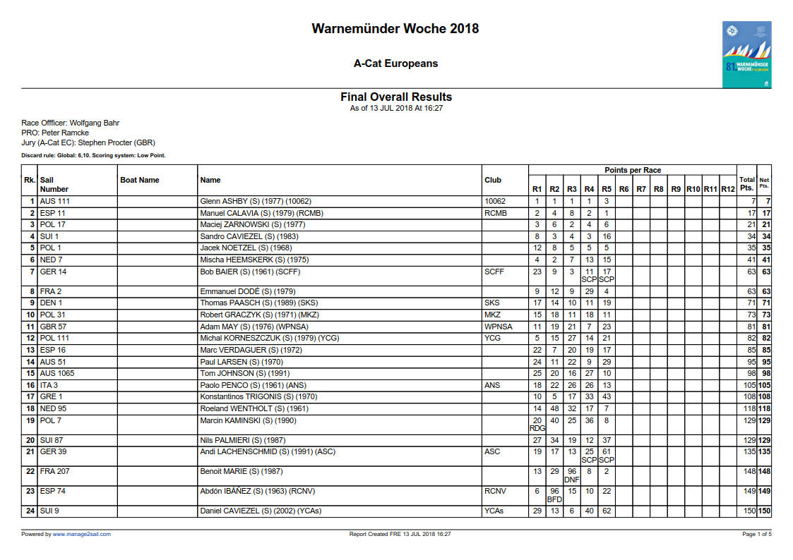 Die Wertung der Classic A-Cat’s: 1. Marek ZEBROWSKI, 2. Micky TODD, 3. Florian HENNIG.