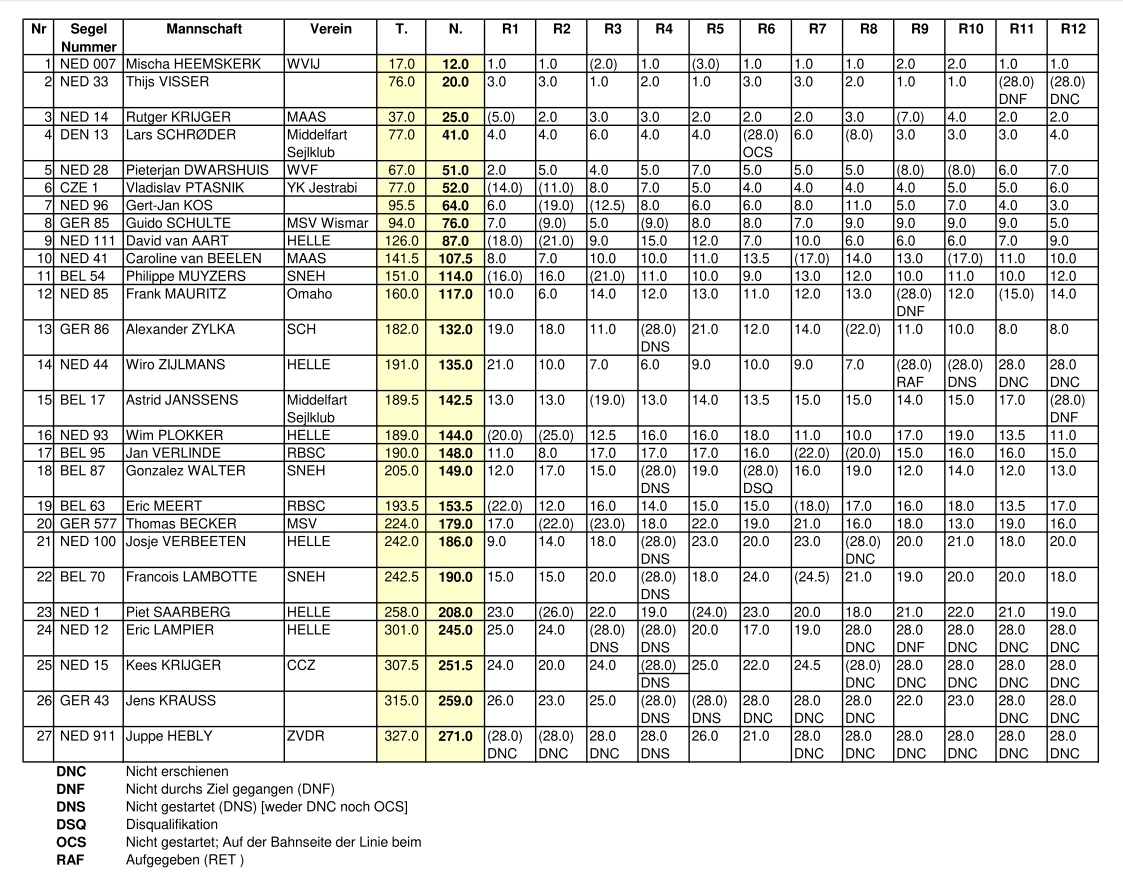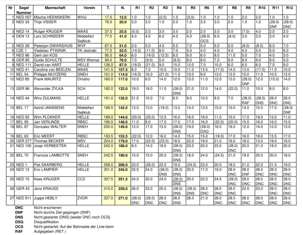 Holländische Meisterschaft ONK – Ergebnis