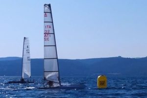 Nach langer Corona Pause wurden die ersten Regatten in Italien beim AVB Associazione Velica di Bracciano durchgeführt. Insgesamt 21 A-Cats, aus 3 Nationen