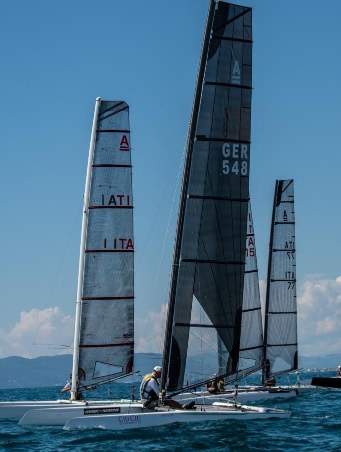 Zur letzten Italienischen Qualifikations-Regatta für die EM in Arco kamen 16 Classic A-Cats, leider kein Foiling Boot.