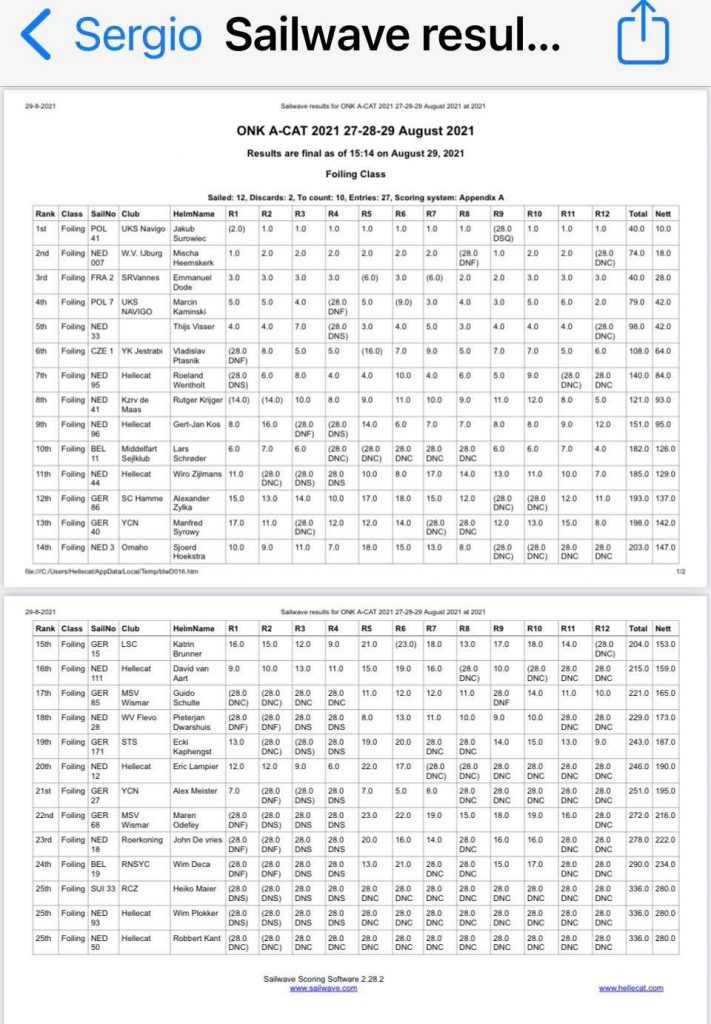 Ich selbst fuhr zwar relativ langsam, kam mit vorsichtigem Foilen jedoch ohne Kenterung durchs Wochenende und musste nur zwei Rennen wegen einem gerissenen Vorstag aussetzen. Am Ende war ich so bester Teilnehmer aus einem Land mit D.