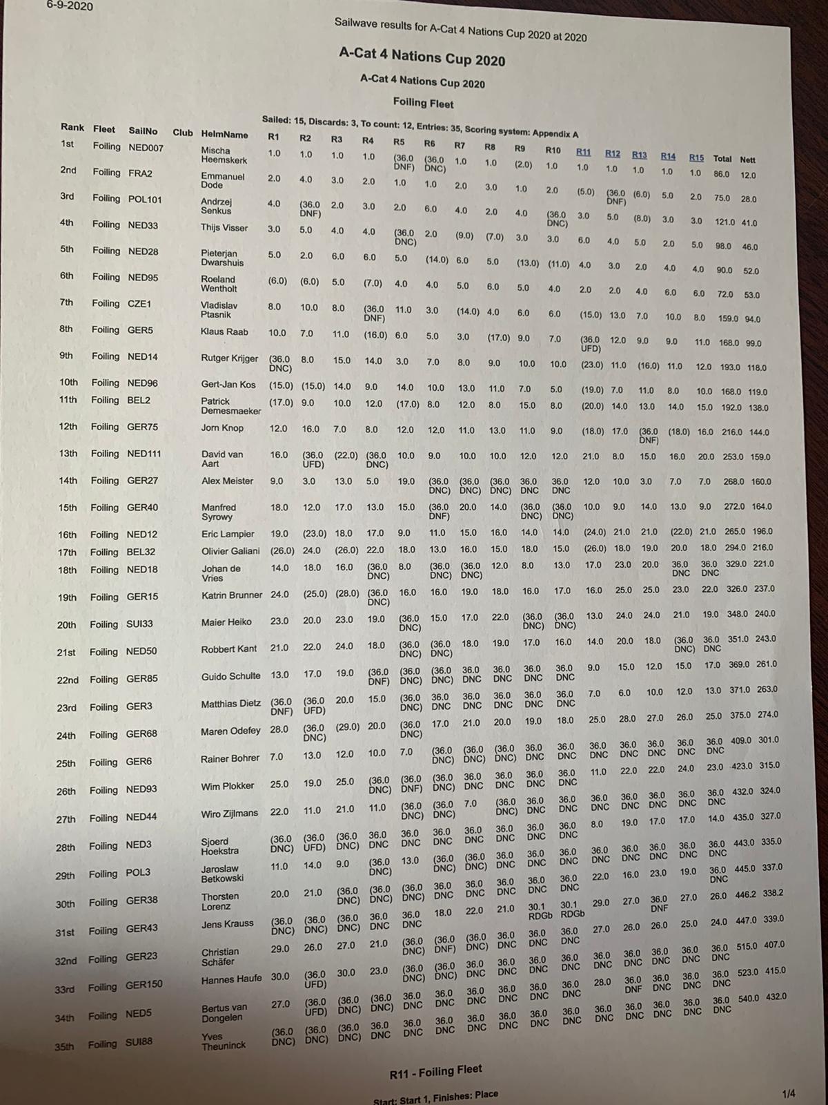 Der 4Nations-Cup sollte ursprünglich die gemeinsame nationale Meisterschaft von Großbritannien, Belgien, Deutschland und den Niederlanden sein. Die Briten mussten jedoch Corona-bedingt kurzfristig passen, ihre Regierung hatte strenge Ausreiseauflagen gemacht. Somit handelte es sich de facto um einen 3Nations-Cup. Die Beteiligung war dennoch exzellent, jedenfalls angesichts der widrigen Bedingungen in diesem Jahr. 34 Foiler und 24 Classics aus insgesamt acht Nationen machten den Cup zu einer kleinen Europameisterschaft; voraussichtlich dürfte das die weltweit größte A-Cat-Regatta im Jahr 2020 sein.