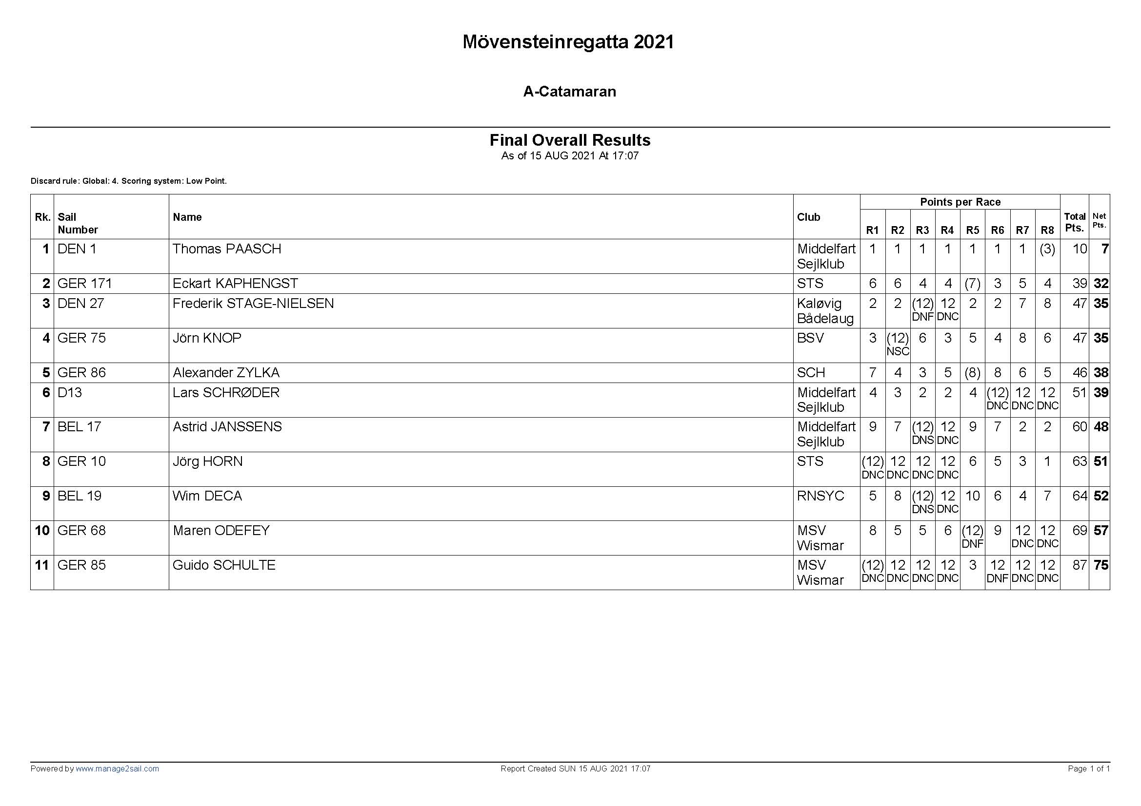 Hier kommt das Ergebnis der Regatta in Travemünde mit internationaler Beteiligung.