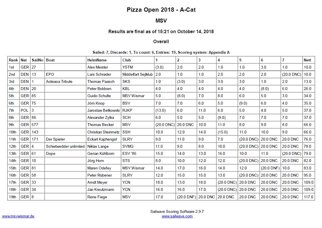 The 10th Pizza Open will possibly be remembered for years to come. Outstanding weather conditions on both days produced smiling faces all around. Wind between 12 and 20 knots on Saturday and 14-16 knots on Sunday, combined with sunny temperatures well above 20 degrees until the late evening provided the optimal frame conditions for excellent foiling in 7 races and then a cool well deserved after sail beer and pizza fresh from the oven. The latter, for the first time in this end of season event, while sitting outside and enjoying the warm breeze in middle of October on the Baltic Sea coast!