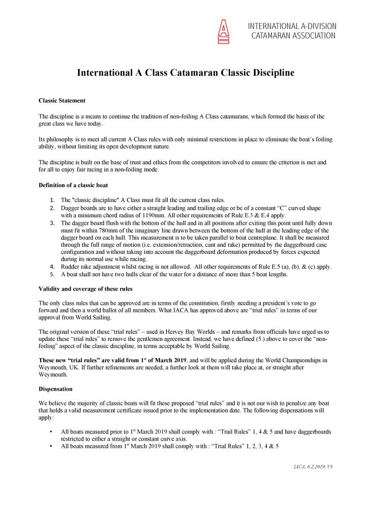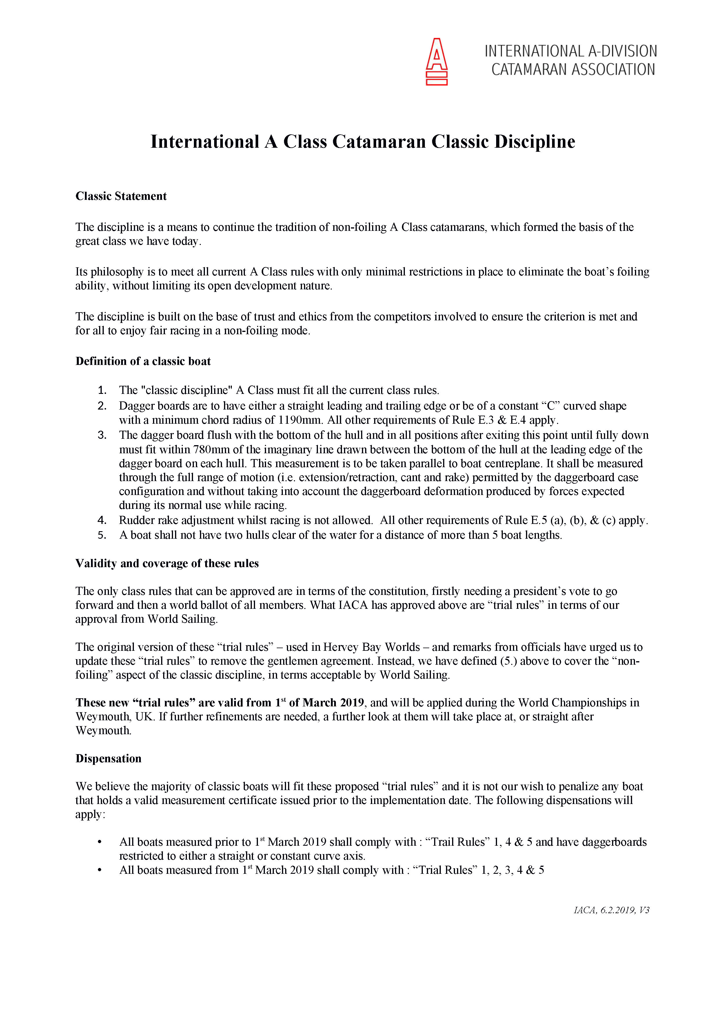 Geänderte Testregeln für A-Cat Classic, gültig ab 01. März.