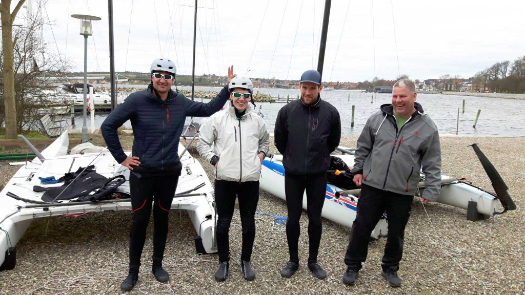 Auf der Regatta in Steinhude haben wir uns kurzfristig zum Training in Sonderborg mit einigen neueren A-Cat Seglern zusammen gefunden. Darunter die beiden Dänen Morten und Felix, die auf ihren Explodern eifrig das durch die Gegend fliegen trainierten während Martin und ich uns noch mit unseren Booten auseinander setzten, die sich am Boden der Tatsachen bewegen.