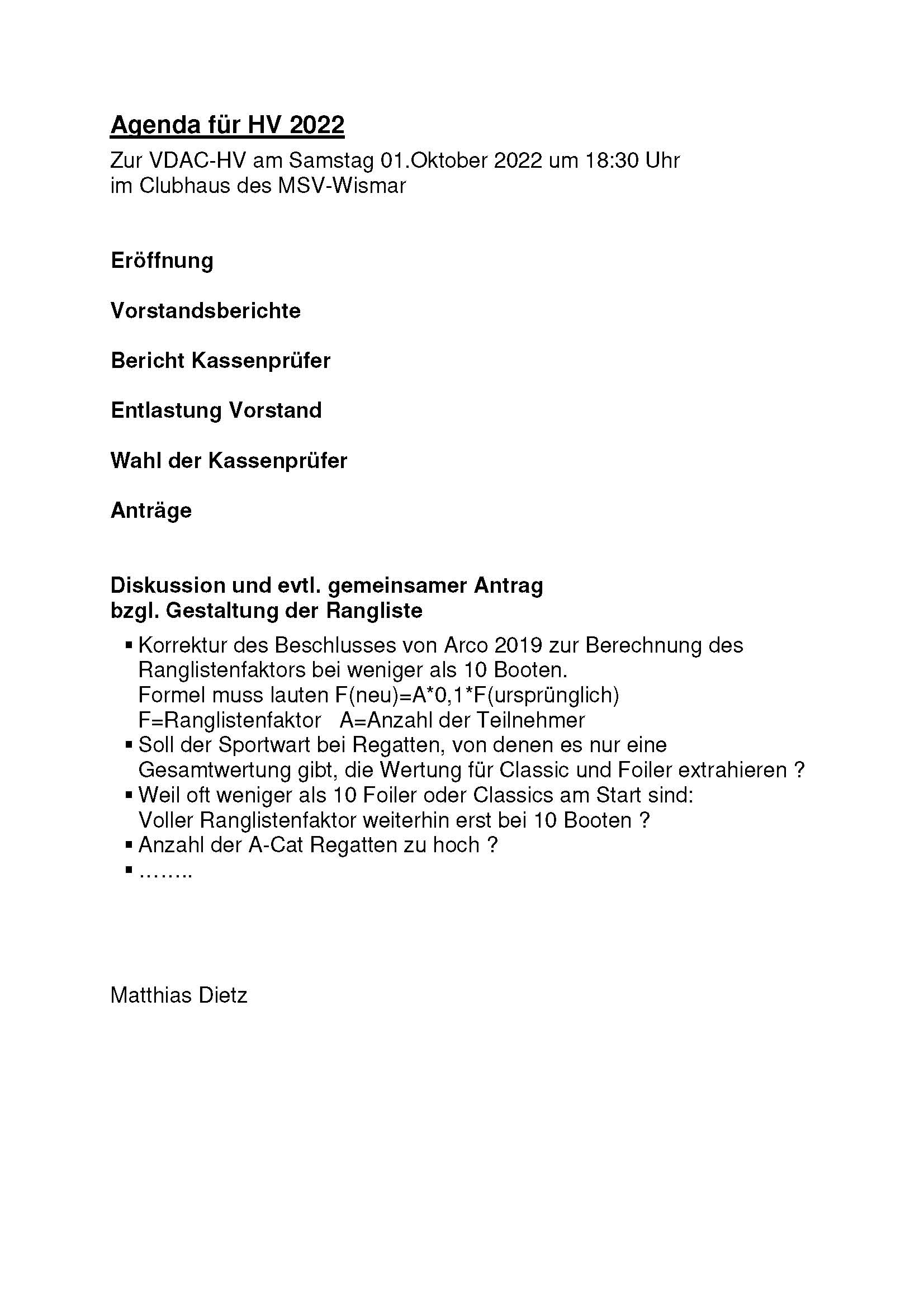 Die Hauptversammlung findet während der IDM in Wismar am Samstag 01. Oktober 2022 um 18:30 Uhr